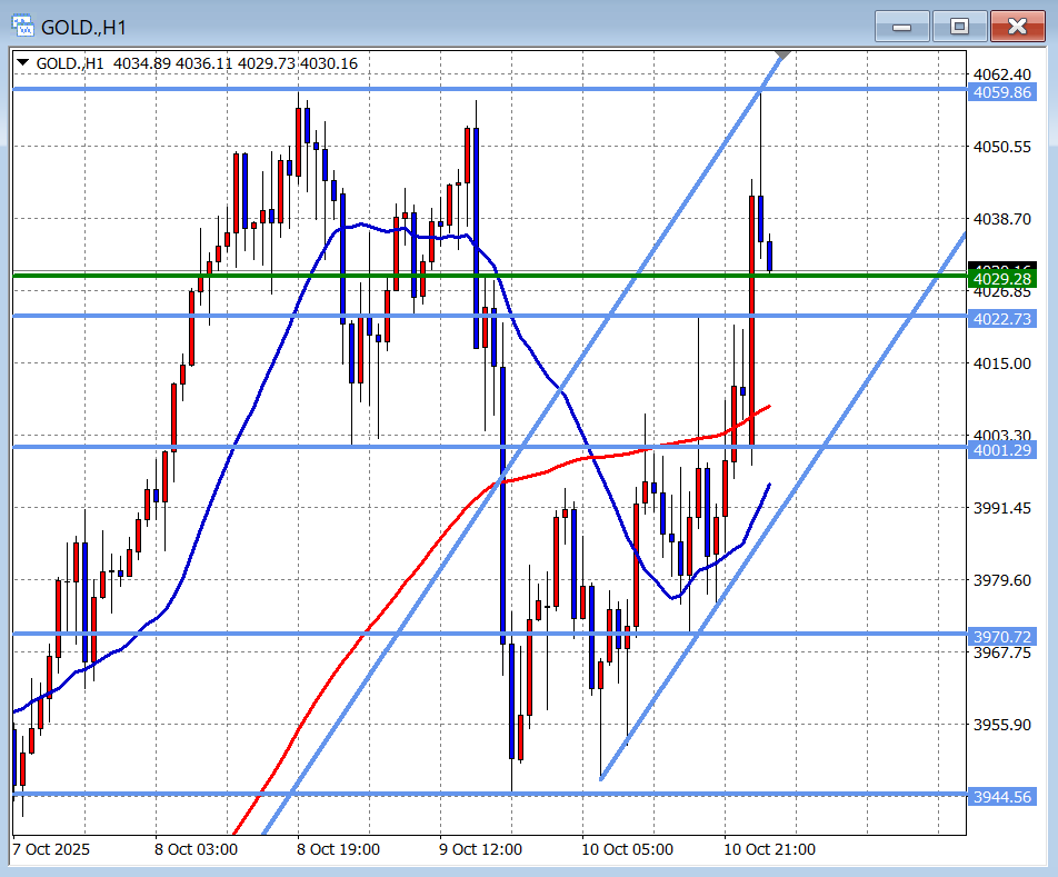 週明けオープンの陽線がまぁ大きくて、その上昇の勢いで高値の4時間足レベル水平線(水色、4059.86)まで到達。