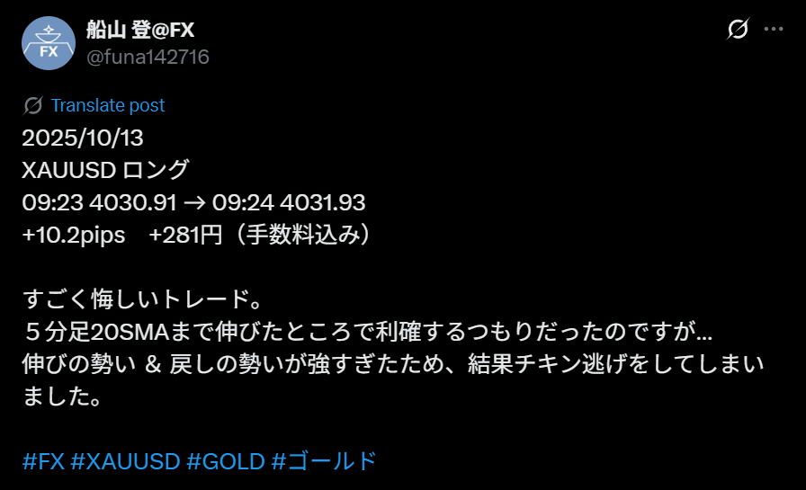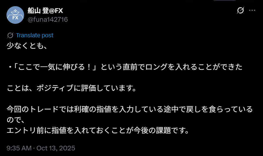 この点は明確に改善点なので、今後のトレードルールに組み込もうと思います。