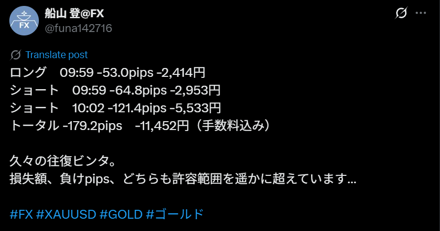 それが、欲を出した順張りロングと、その負けを獲り返したい気持ちがトリガーとなったドテンショート×2。